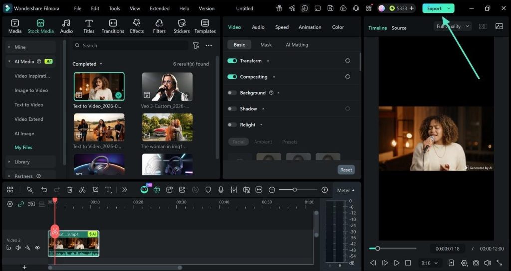 Once you are satisfied with the result, click the “Export” button to download the generated video.